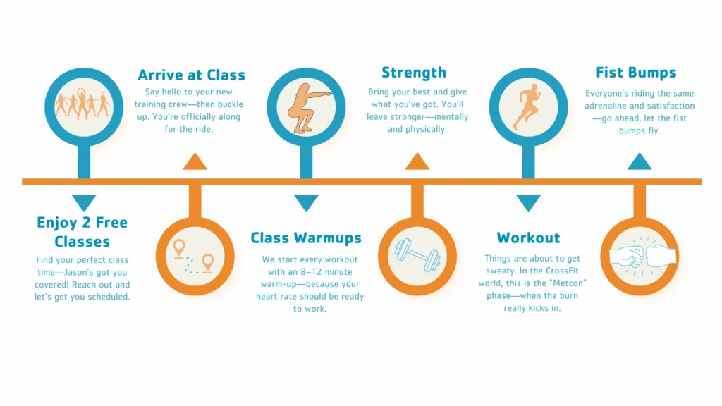 To help newcomers ease into the experience, we offer two free classes for anyone who hasn’t been here before. You’ll join our regular classes, but with extra guidance every step of the way—we’ll walk you through each movement, answer questions, and make sure you feel comfortable and confident. It’s a supportive, low-pressure way to experience CrossFit and discover a community that truly wants you to succeed.